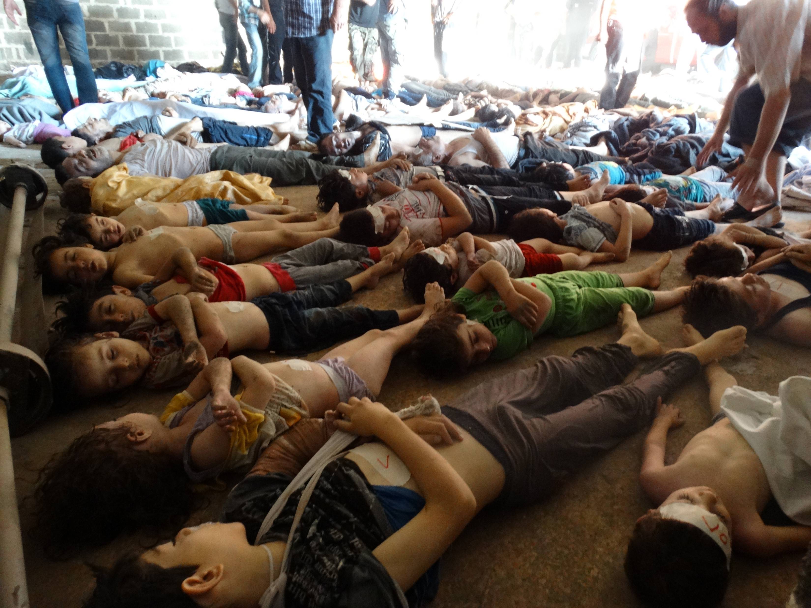 Imagem nº 1 - Crianças mortas pelos recentes ataque químicos promovidos pelo regime de Bashar al-Assad. Mas o caso não será investigado devido às divisões existentes no Conselho de Segurança da ONU.